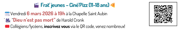 Accueil > Agenda > Frat’ jeunes – Ciné’Pizz (11-18 ans)